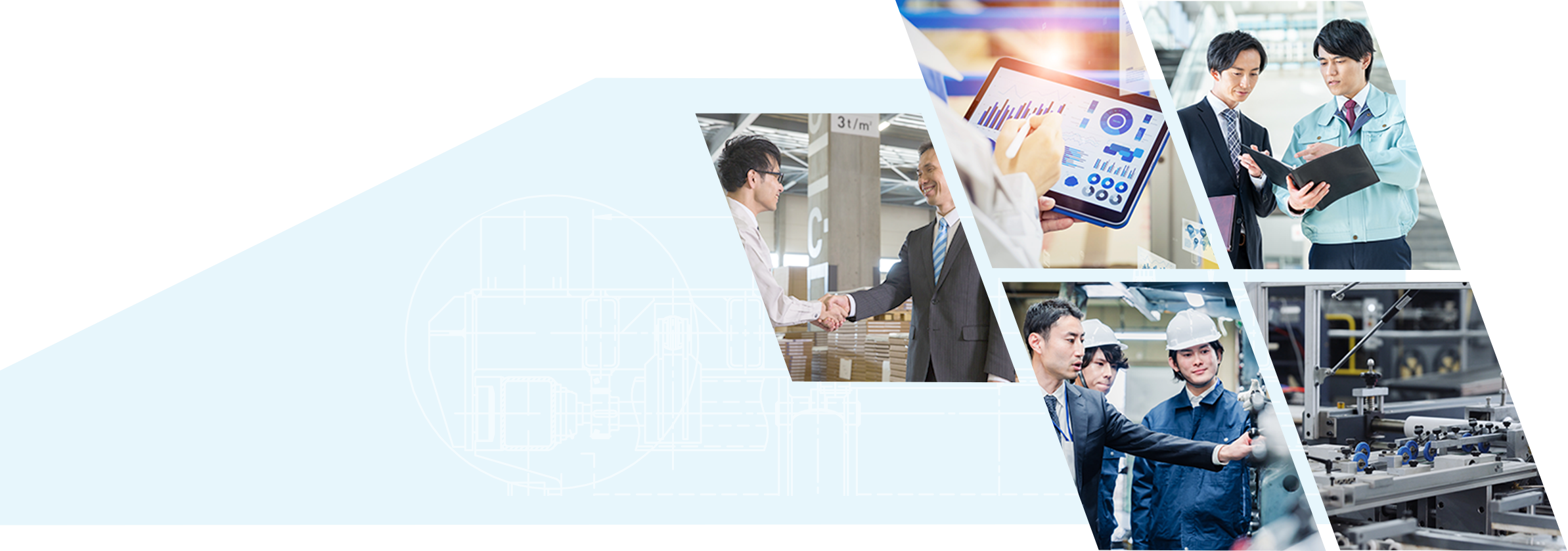 より良い生産ラインの構築や現場の業務改善を支援。「技術部門」「生産部門」「販売部門」が連携しあう“技生販一体”の体制も特徴です。